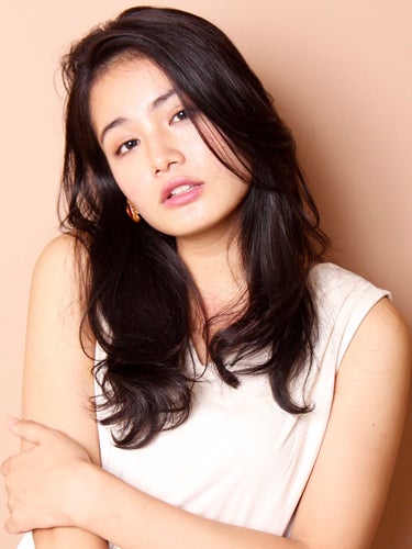 レイヤーを入れてひし形のシルエットができると、小顔効果も抜群なのでおすすめです。髪の毛の美しいツヤ感で、黒髪に近いダークトーンのヘアカラーでも軽さが出ますよ。