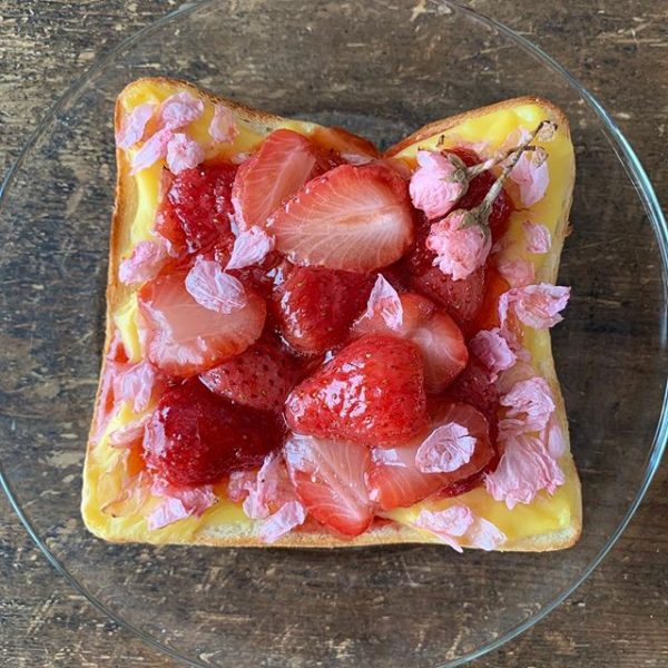 簡単にできるカスタードイチゴ桜トースト