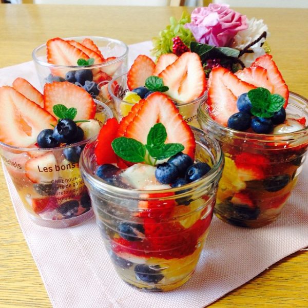 ひな祭りのお菓子にこのデザートを作ってみてください。 たくさんのフルーツを入れてそれぞれの味わいを楽しみましょう。
