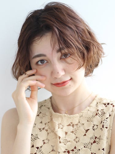 ひし形のシルエットは小顔効果だけではなく、レングスが短いヘアスタイルでも女性らしい仕上がりにしてくれるのが良いところです。