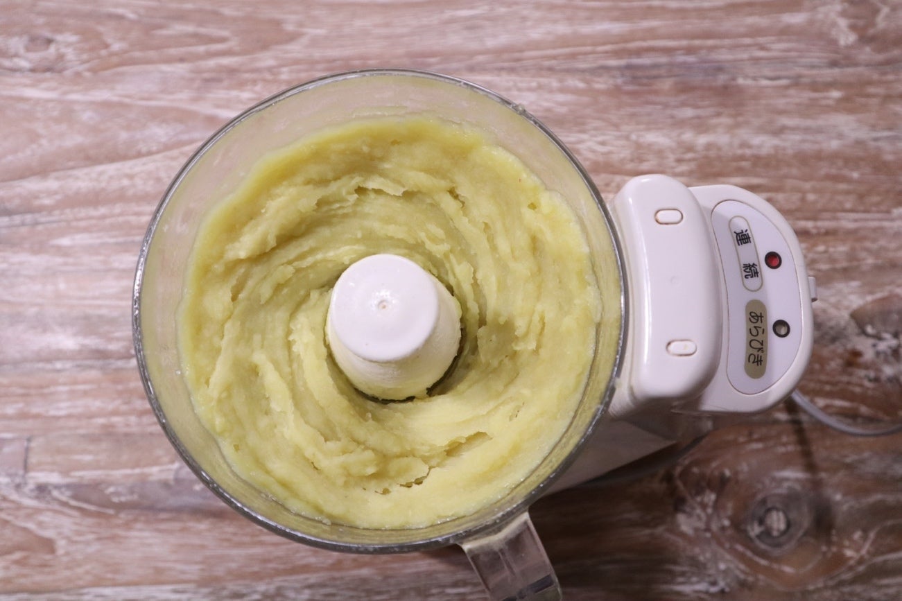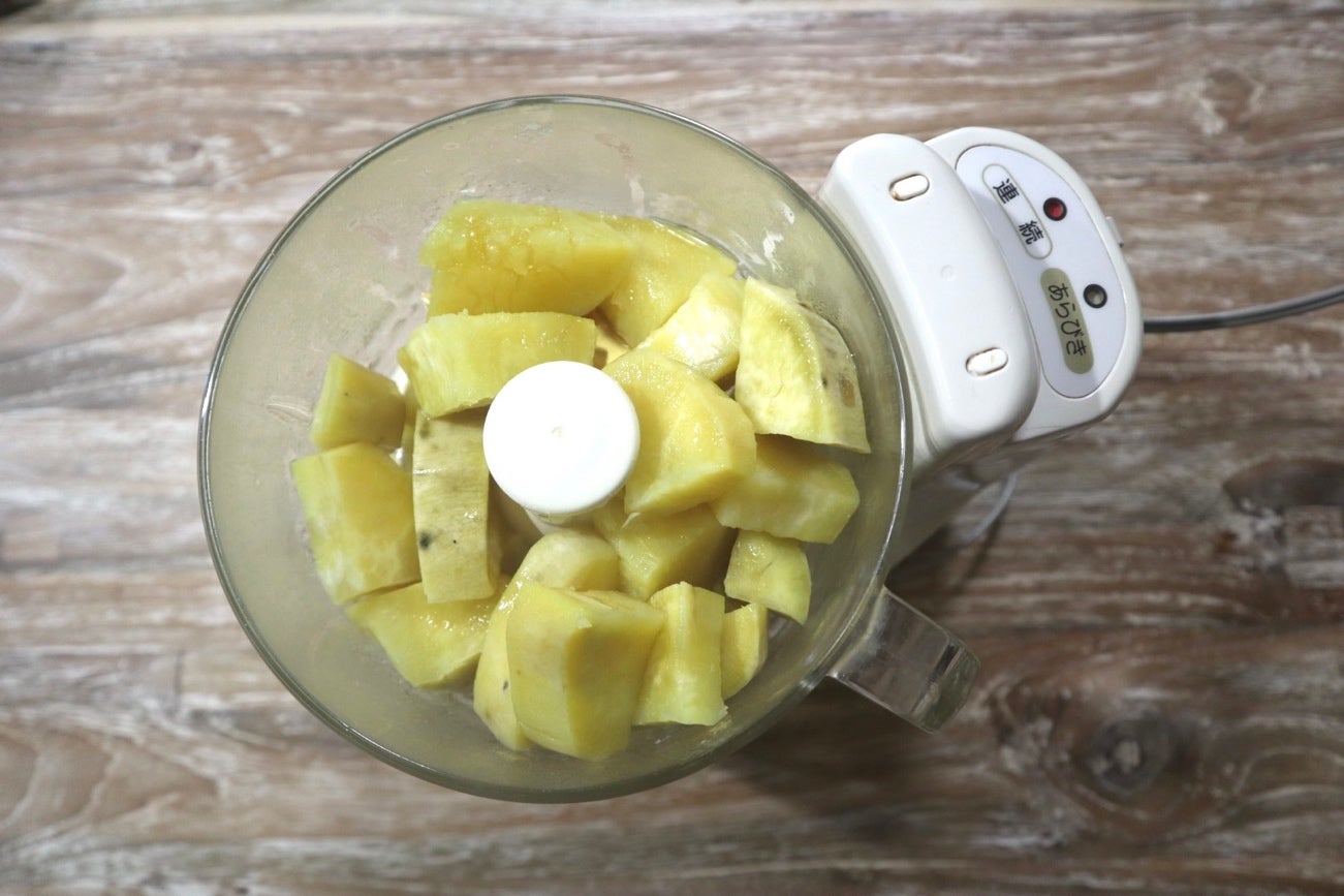 ② さつまいもが熱いうちにフードプロセッサーに入れてはちみつ・塩を加え、なめらかに撹拌します。
