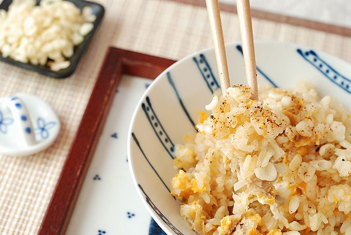 甘いお揚げと、とろける白ネギの旨みがしみ込んだご飯は、食べだすと止まらない美味しさ。上にのせたカリカリの天かすにふわとろ卵が絡んで最高ですよ!