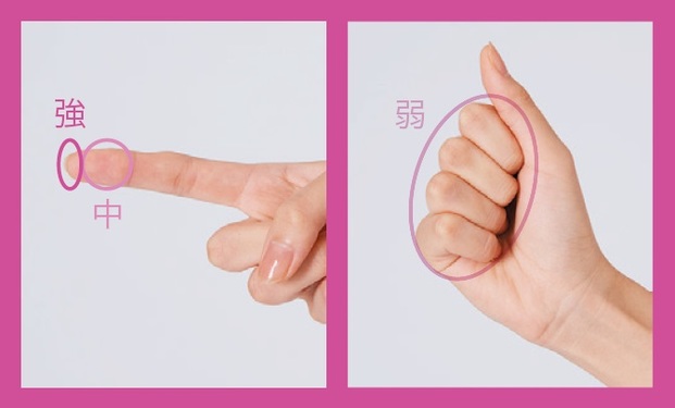 強…指先を使ってピンポイントで押す。