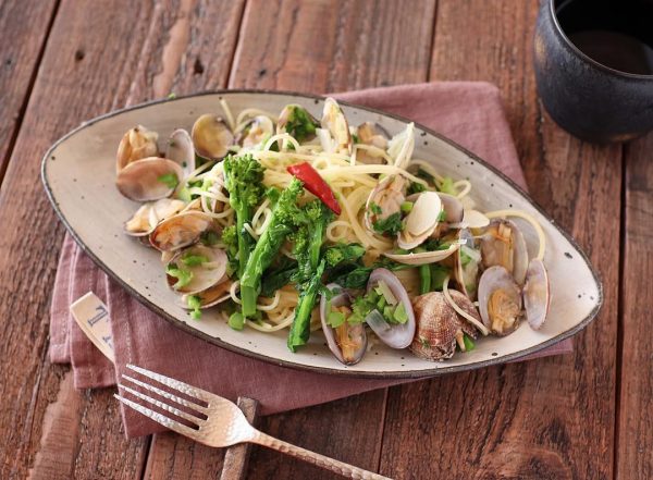 あさりは砂抜きするのに時間がかかりますが、調理の際は口が開くまで数分蒸し焼きにするだけなのですぐに作れます。菜の花は下茹でしてから使いましょう。