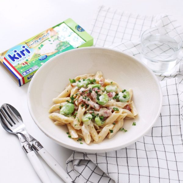 こちらはクリームチーズを使ったペンネのレシピ。ハーブとガーリックの入ったクリームチーズなので、パスタにも味が付いて美味しくなります。