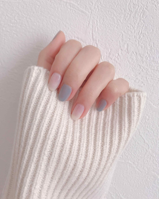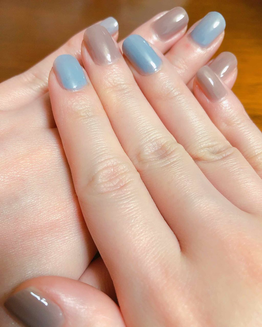 大人の女性に人気の45は、パープルを少し混ぜたようなお洒落なグレージュです。くすみピンクと合わせれば、優雅でフェミニンなネイルが完成します。