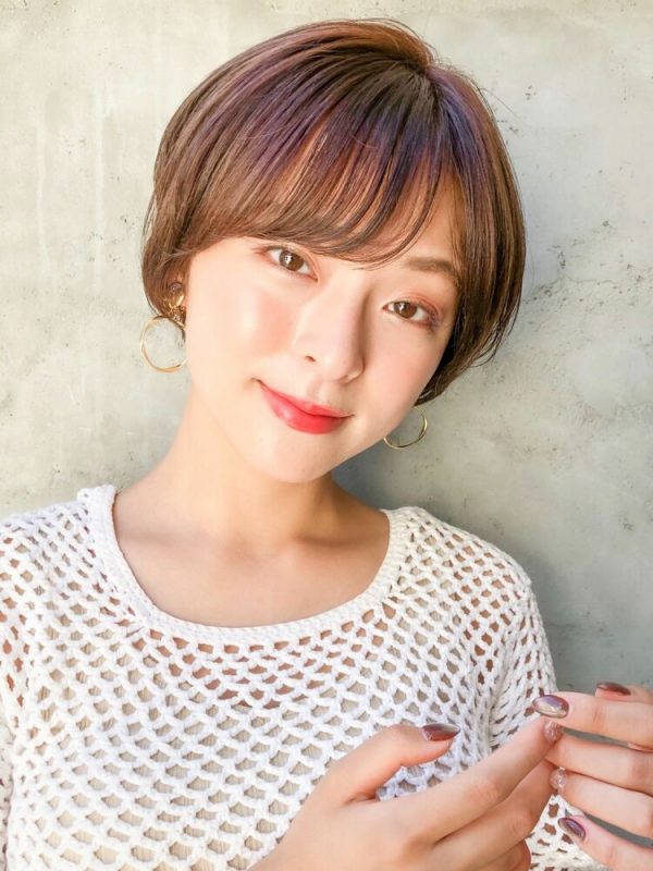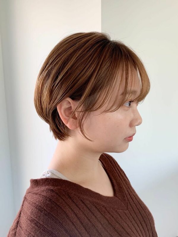 やさしい雰囲気が魅力の髪型の丸みショートですが、あたたかみがあるカラーにすることでよりやわらかい雰囲気になりますね。
