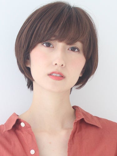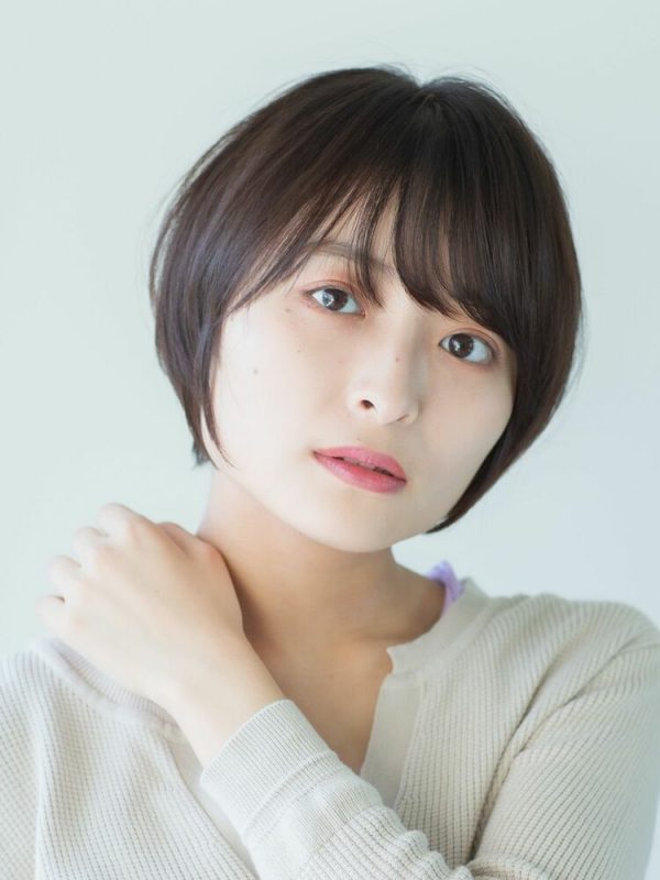 前髪が長めで目にかかってしまうという場合は、さらりとサイドに流れるように動きを作ってあげると大人女子に似合う丸みショートになります。