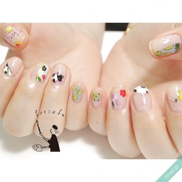 干支としてうし柄を取り入れたいなら、お正月らしいデザインと合わせるのがポイント。紅白を取り入れたり、シンプルな小花を取り入れたりしてお正月を意識。さらにうし柄はリアルな牛そのものをアートして、丑年を意識してみましょう。