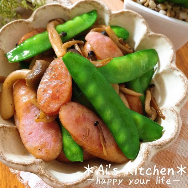 牡蠣鍋と好相性☆きぬさやとウインナーの醤油炒め