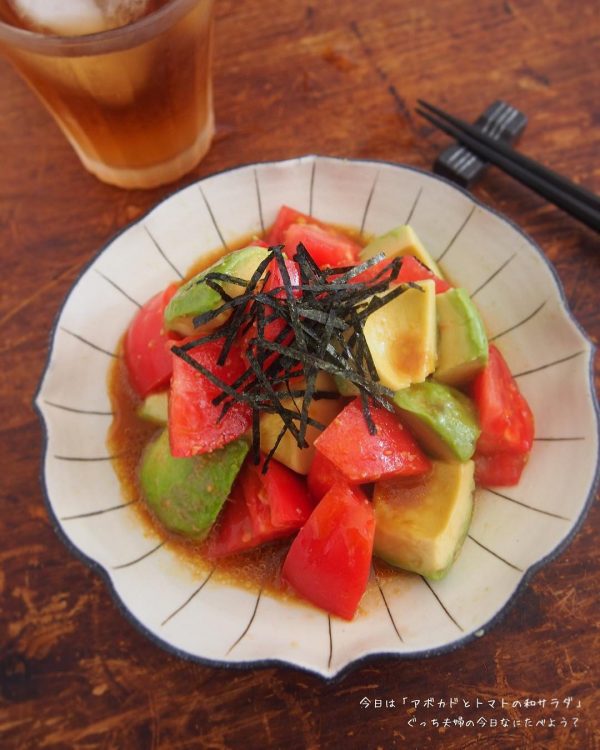 切って和えるだけの簡単調理ができるアボカドとトマトを、わさび醤油で和風のサラダにしたレシピがこちらの料理です。