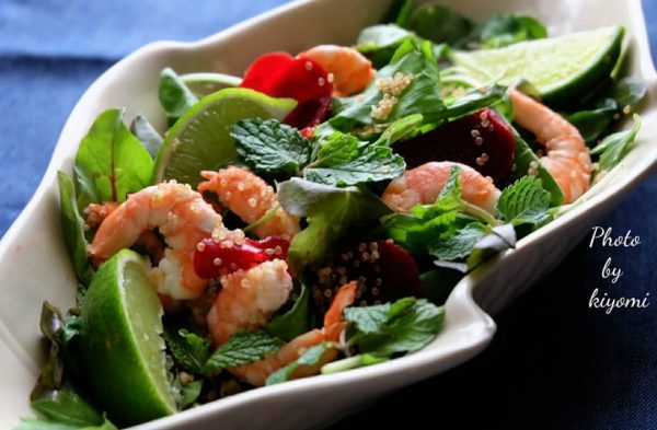 ミントが香る海老のエスニックキヌアサラダ