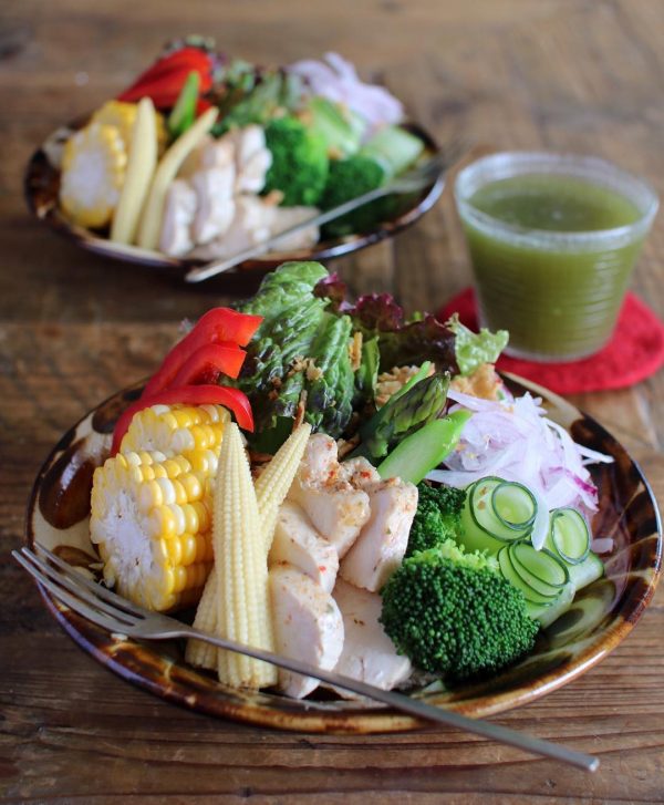 自家製サラダチキンの野菜たっぷりサラダ