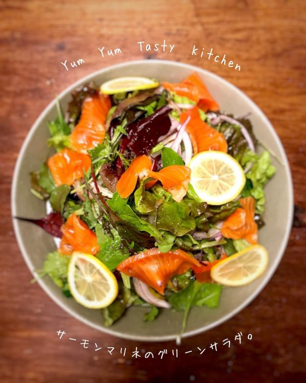 サーモンマリネのグリーンサラダ