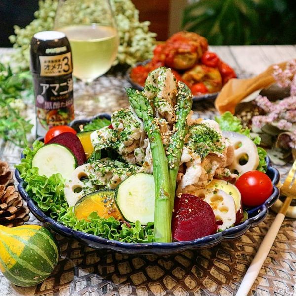 いろいろな種類の野菜をたっぷりと使っているサラダは人気おもてなしレシピですね。