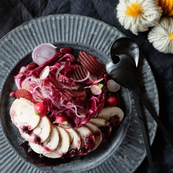 スパイシー鶏ハムのおしゃれなレッドサラダ