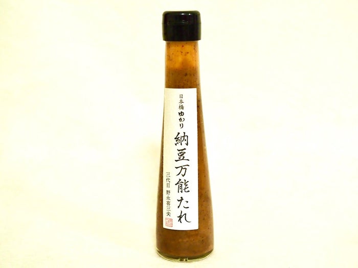 「納豆万能たれ」を開発した菊水食品は「日本一旨い納豆」に与えられる最優秀賞を獲得したこともある、こだわりの納豆屋さん。テレビ番組「料理の鉄人」でチャンピオンとなった料亭の料理人さんと一緒にこの商品を生み出しました。日本一の納豆といわれる「海洋ミネラル納豆」と黒大豆の「黒豊」を贅沢に使ったタレは、料亭で刺身を提供するときに添えられるほどバランスがよい調味料。納豆なのにクセが少なく、多くの料理に使えます。