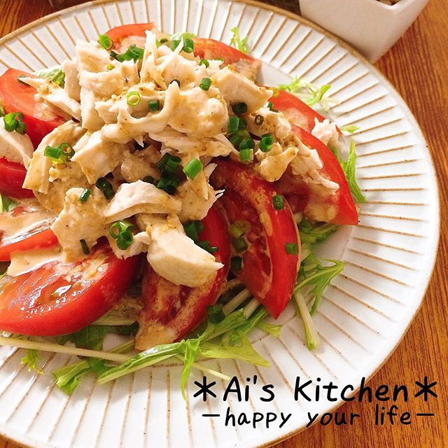 こちらのレシピは、棒棒鶏風の簡単サラダ。蒸し鶏を作り置きしておけばサッとできるので、とっても便利ですよ。
