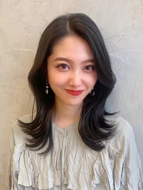 韓国らしさを出すなら、毛先に重さを残してレイヤーを入れるのが◎。全体にボリューム感が出て女性らしいスタイルが叶います。顔まわりが明るく華やかになり、マスクが必須のニューノーマルな時代でも可愛さばっちり。
