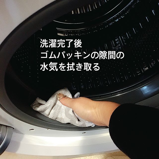 洗濯完了後にぜひ行いたい習慣は、洗濯機内にある水気を拭き取ること。