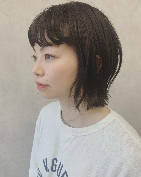透け感をつけた前髪はボブヘアの悩みでもある、のっぺりとした質感を解決してくれるテクニック。