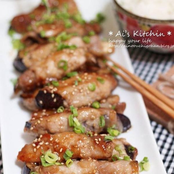 インゲンやにんじんを巻いた定番も人気の料理ですが、なすはお肉の脂と相まって美味しいです。