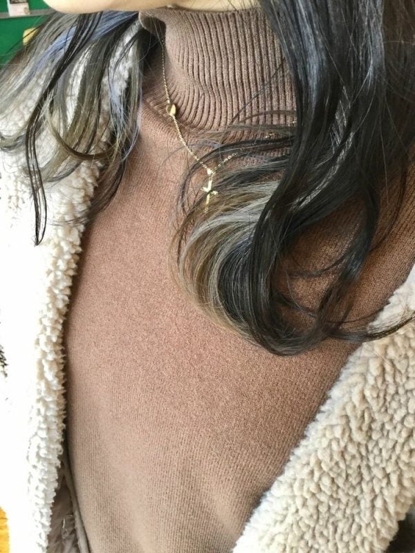 ミルクティーのようなまろやかさのあるカラーに、ハイトーンのアッシュインナーカラーでアクセントを付けた冬らしい髪色ですね。