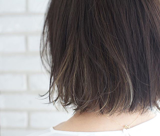 暗めのベースに細いスジで入れる、おすすめの大人アッシュインナーカラーです。