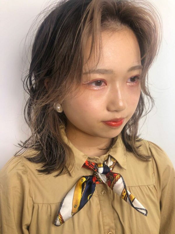 一部分に入れてちらりと見えるアッシュのインナーカラーは、結んでしまえば隠れるのでオフィスでもこっそり楽しめそうですね。