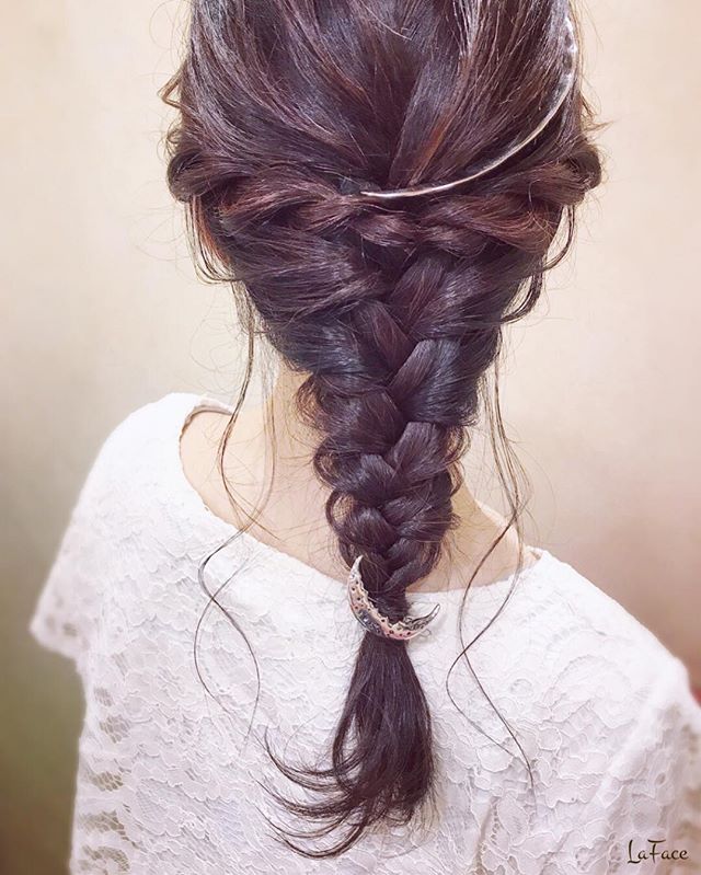 編みおろしのダウンスタイルはロングヘアの魅力をさりげなく素敵に見せてくれますよ。