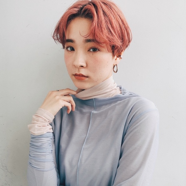 マニッシュなマッシュショート。⽑先をワンカールさせたセミウェットな質感の柔らかなボブスタイルは、フワッとしつつ襟足をキュッとしめることで可愛すぎない少し大人めなお洒落な印象のショートヘアに。