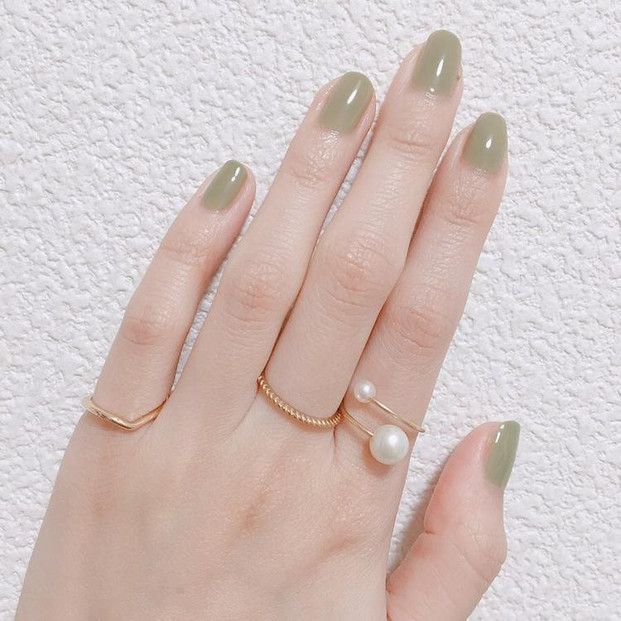 まずは、セルフネイルできる単色のオリーブカラーを紹介します。