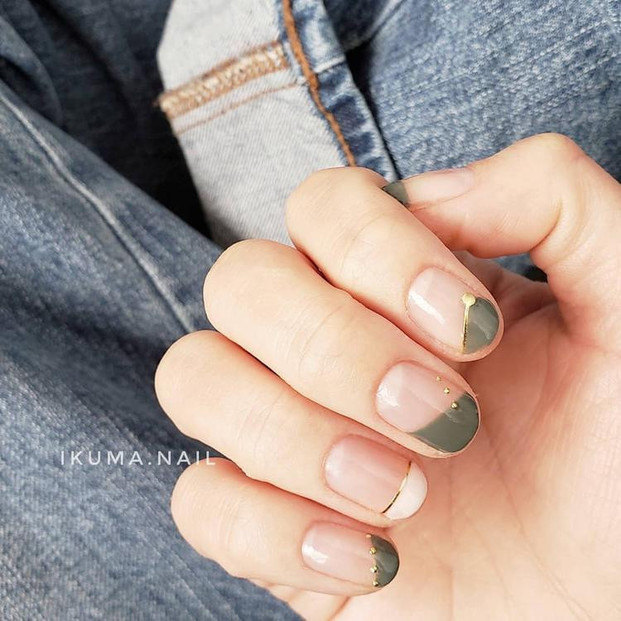 次にセルフネイルでもできる、簡単なのに上品に仕上がるオリーブカラーの冬ネイルデザインを紹介します。