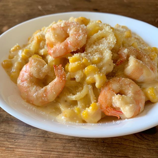 アンチョビペーストを加えればピシッと引き締まりますよ。コーンとエビの食感も最高です。