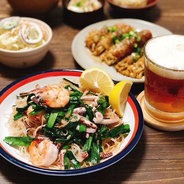 晩ご飯は魚介の献立に♪海鮮焼きビーフン