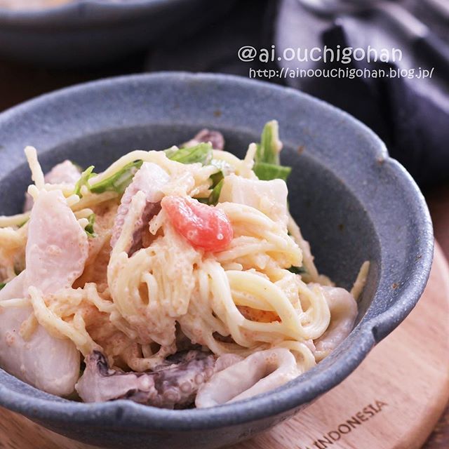 サラスパを使用して明太子といかを合わせた絶品のレシピです。