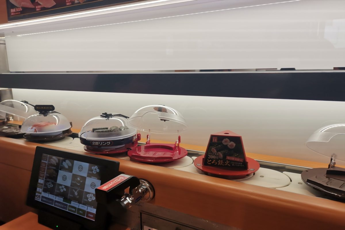 また、これも地味に嬉しい部分なのだが、向いの客のレーンの間にも仕切りがあるため、そこからの飛沫が飛んでこないようになっているのも安心できる。注文品は特急レーンで来るし周っている皿もくら寿司独自のカバーがしてあるため、抵抗感なく取れた。