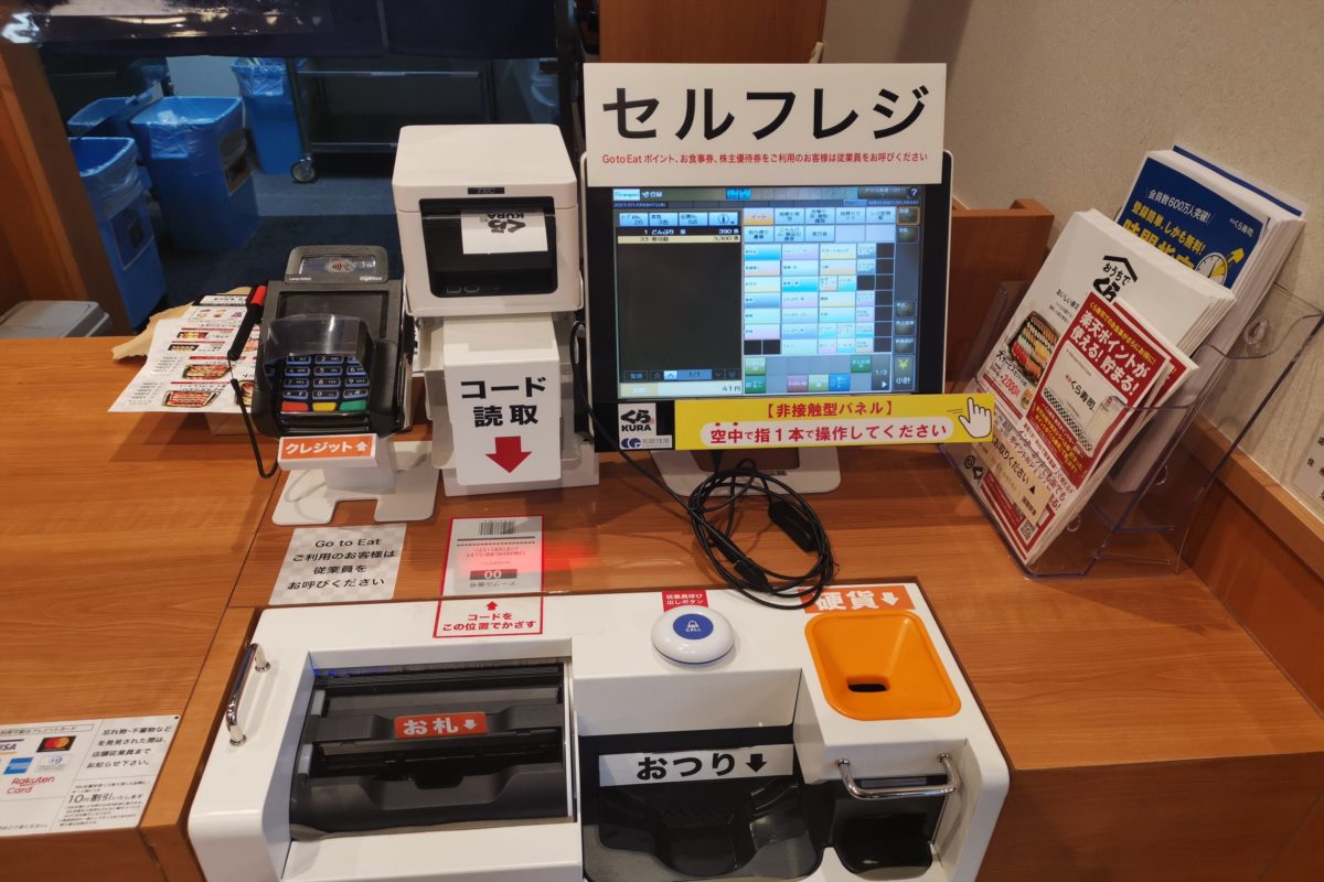 帰りも自動で注文数を計算し非接触型のパネルを使ったセルフレジなので、店員と触れ合うこともほぼない。
