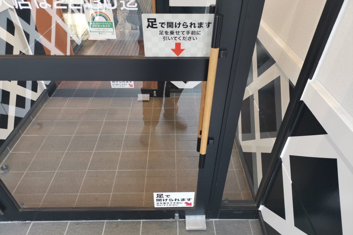 実際に店へ行ってみると、なんと扉も取っ手に触ることなく足で開けられるようになっており驚き。しかし、ややコツがいるためヒールのある靴やサンダルだと開けるのは大変かもしれない。