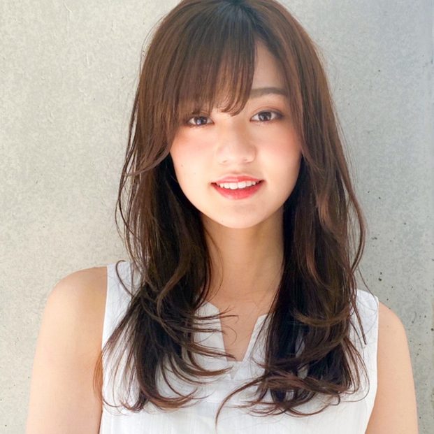 合わせてトレンドの透け感高めの前髪を流すようにスタイリングすれば目元の印象を強調でき、より夏映えする表情に導いてくれます。
