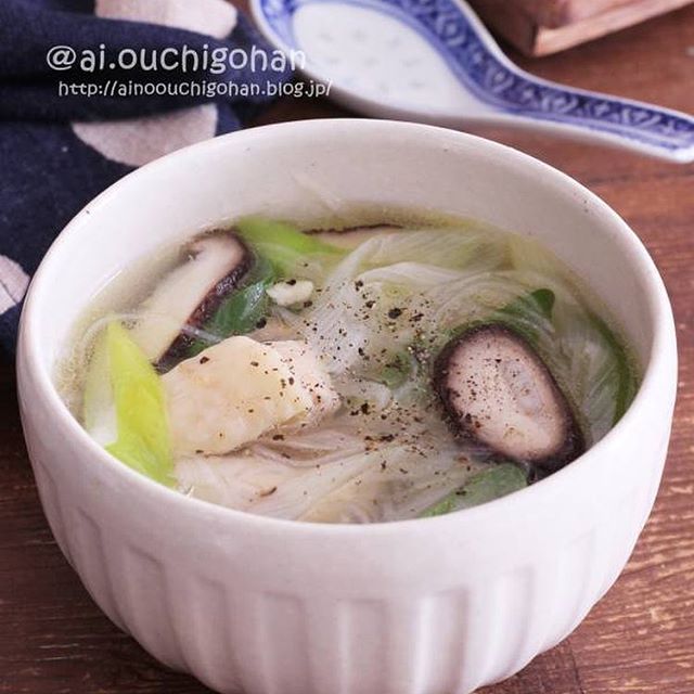 鶏のねぎ塩春雨スープ