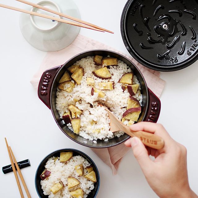 焼き鮭献立に合うご飯レシピから、さつまいもの炊き込みご飯をご紹介します。