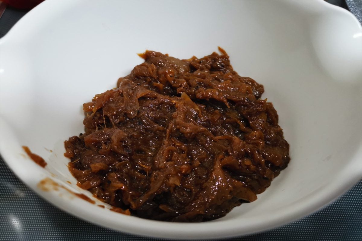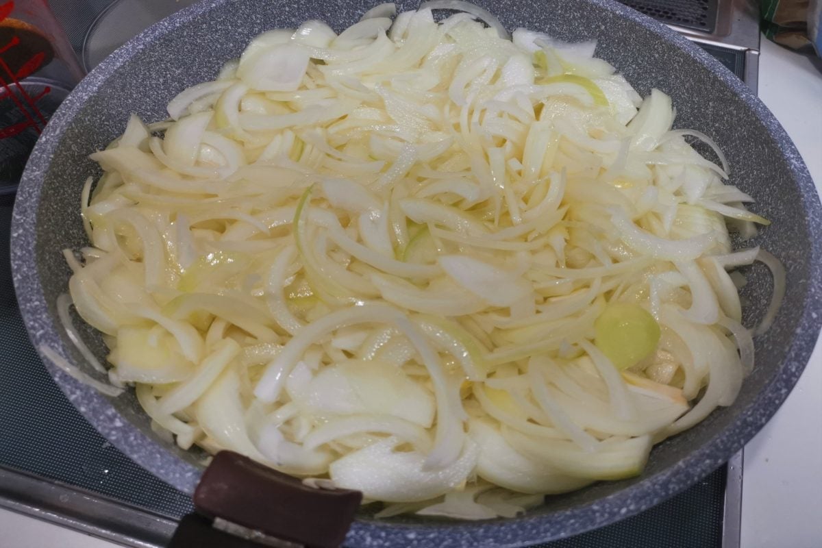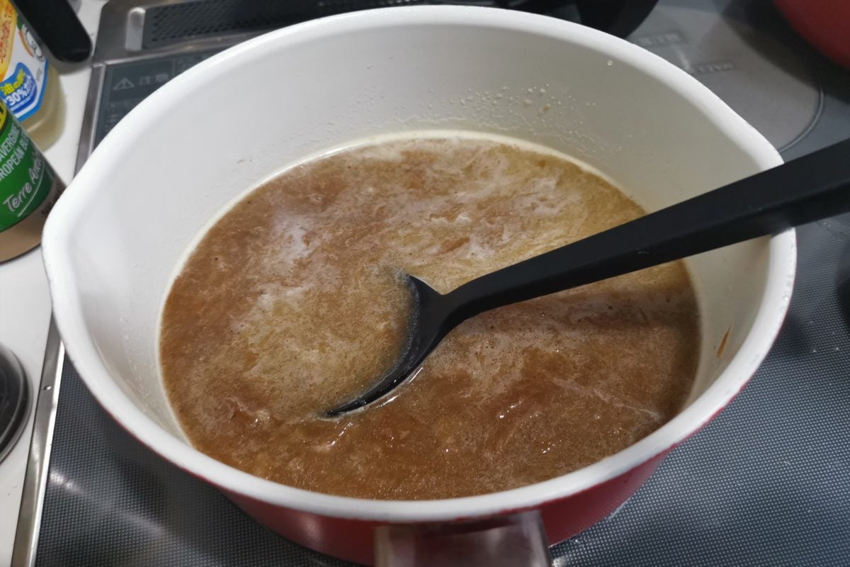 これぐらい茶色くなればもうすぐベースの完成。あとは水がなくなるまでしっかり玉ねぎを炒めれば完成だ。