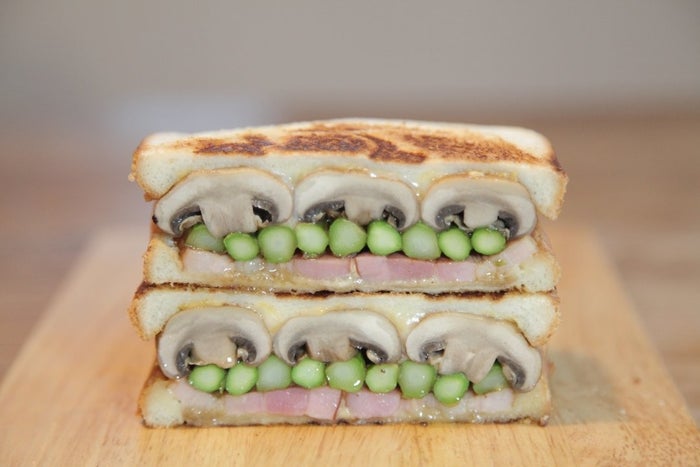 「マッシュルームとアスパラガスの萌え断ホットサンド」の作り方
