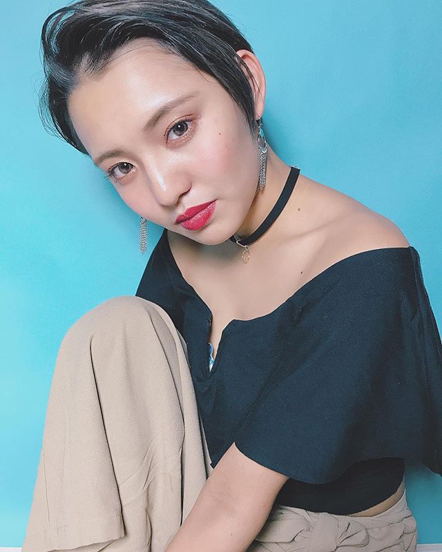 こちらは黒髪ショート×ストレートのクールやモードなイメージを最大限に生かした、大胆なオールバックスタイルです。