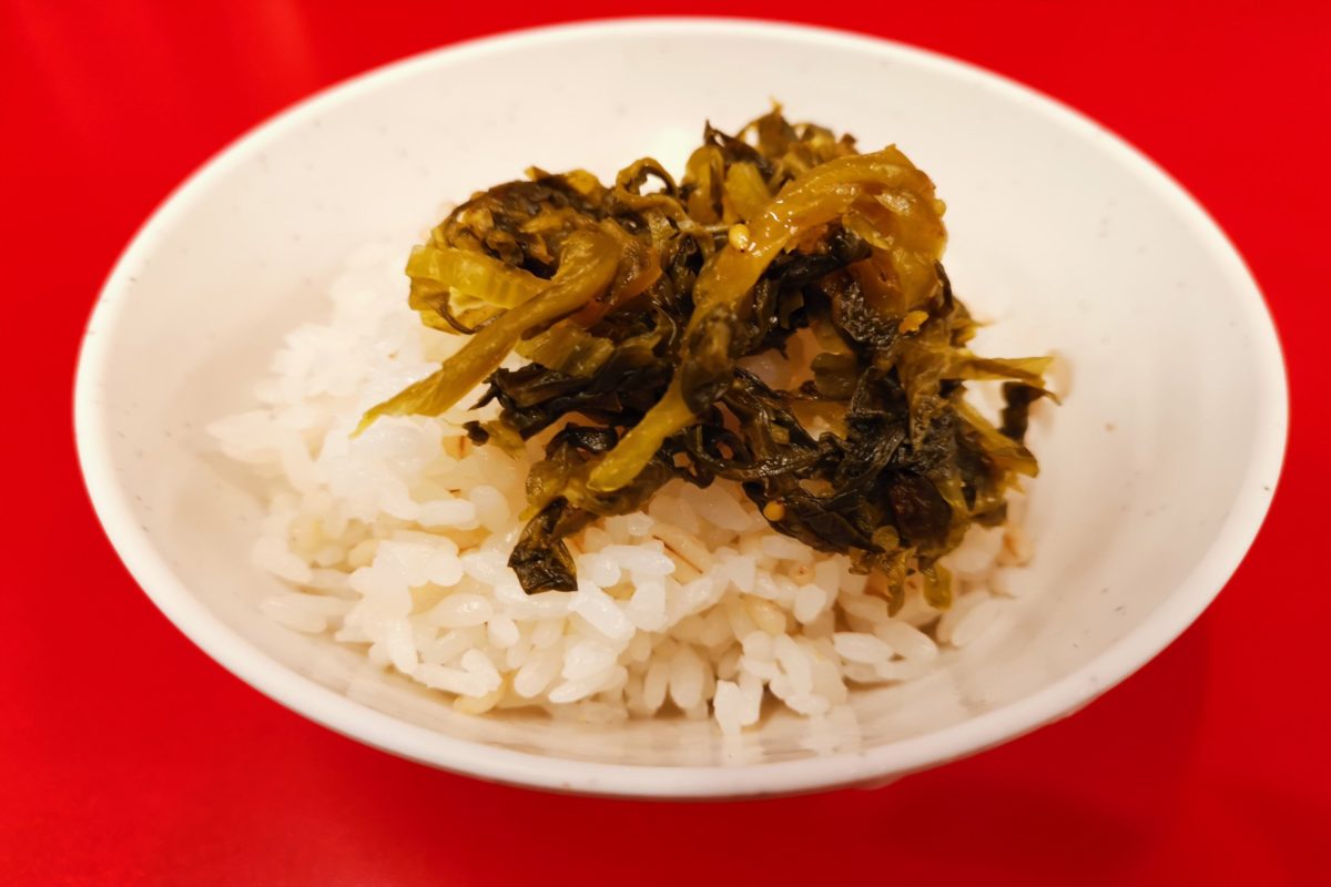 また、非常に良心的なことにライスも食べ放題。それだけでなく美味しい高菜も食べ放題なので、もうこれだけでご飯を何杯もイケてしまうぐらいである。