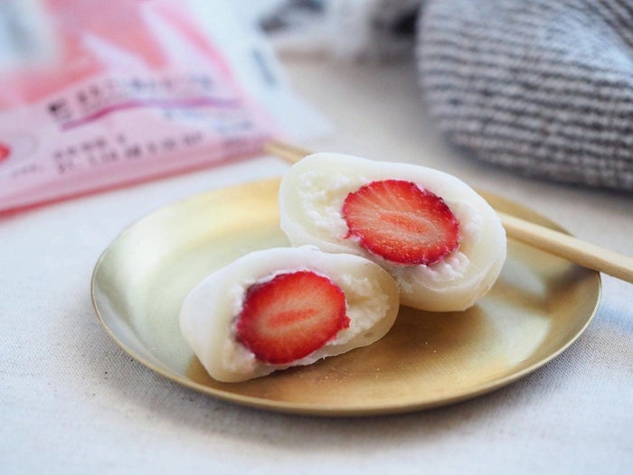 年が明け、コンビニのスイーツコーナーに目をやると、イチゴ、いちご、苺!寒い日が続き、まだまだ春は先だとわかっていつつも、ピンク色のいちごアイテムを見ると、気分が明るくなりますよね。そしてもれなく手に取ってしまいます。この度発売された「まるごと苺みるく大福」は、その名の通りひと粒の苺を包み込んだ贅沢な大福。発売当初は珍しがられたといういちごと大福の組み合わせも、いまや誰もが認める王道コンビになりました。 通常はあんこと生クリーム、いちごを使ったいちご大福が一般的ですが、ローソンの苺みるく大福はクリームに練乳を使っているのが特徴。