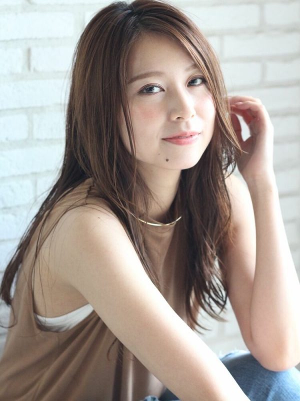 暗めのヘアカラーと前髪なしのヘアスタイルも相まって、落ち着いた大人の女性を演出できますよ。