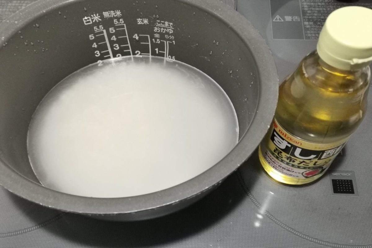 炊き方は簡単で、米3合に対しすし酢を小さじ1杯程度入れるだけ。普通の米酢などでもいいが、昆布だしの入ったすし酢を使うと、酢臭さが軽減されてより美味しくなる。