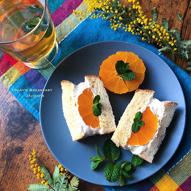 みかんの隙間を埋めるようにたっぷりとホイップクリームを挟むことで、見た目も美味しそうに仕上がりますよ。朝食やおやつの時間にいかがでしょうか。